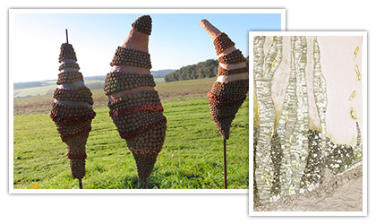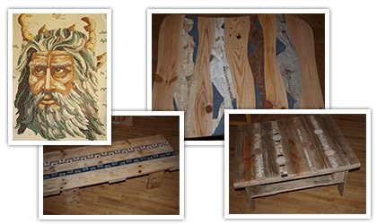 Création de pièces uniques en mosaïques contemporaines pour l'intérieur ou pour l'extérieur : installations et objets en matériaux naturels, tels que marbre, ardoise, granit ou pâte de verre artisanale etc - matières à orchestrer l'émotion !