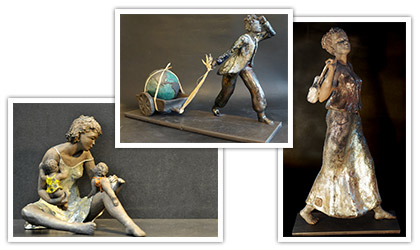 Sculpteur de petites scènes de vie joyeuses, optimistes et tendres, qui donneront envie à ceux qui les découvrent de croquer la vie à pleines dents.